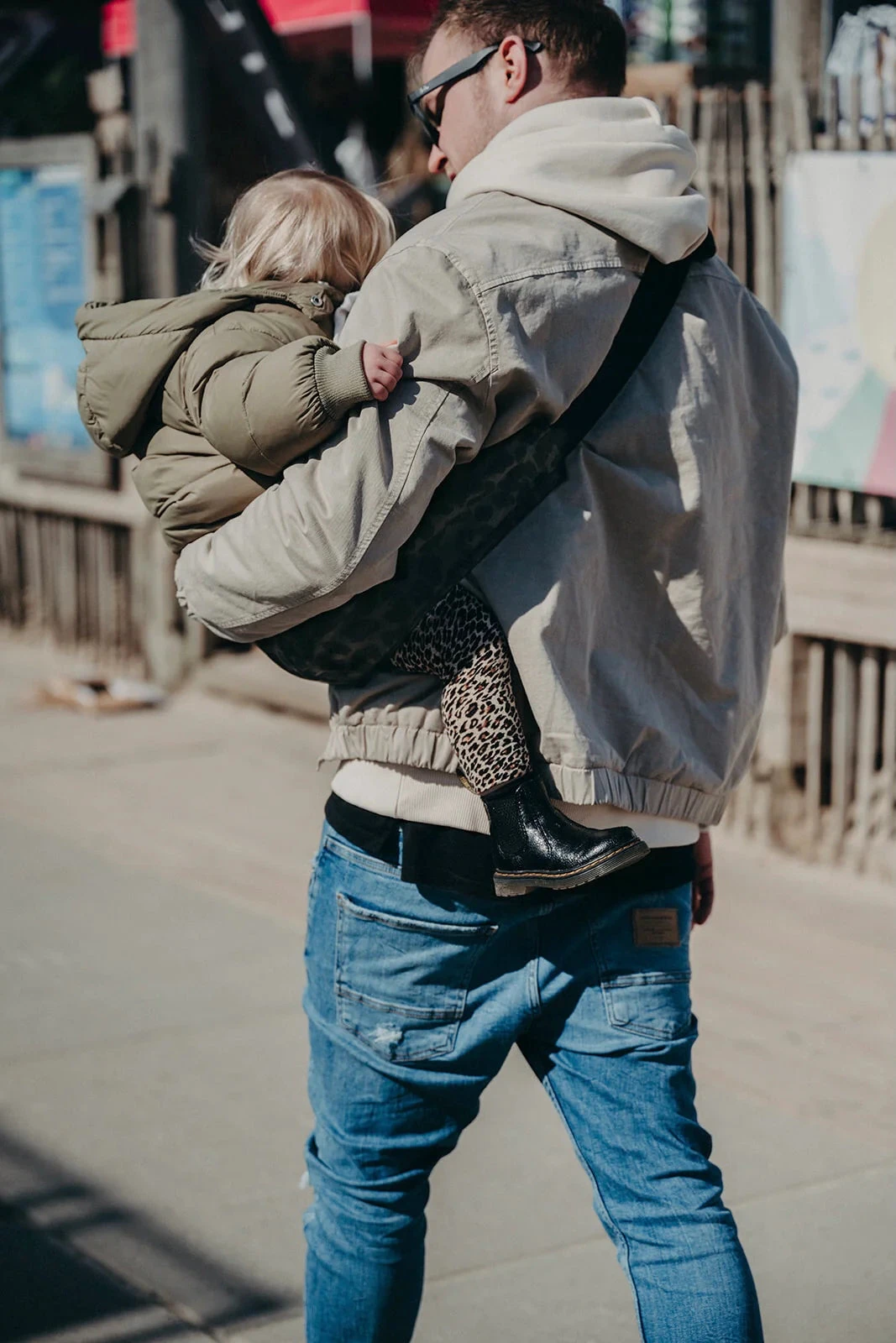 The army green toddler carrier is a real Wildride for all conditions! Can be worn every season or on any occasion. The Wildride child carrier is easy to remove after every adventure you experience with your little one.