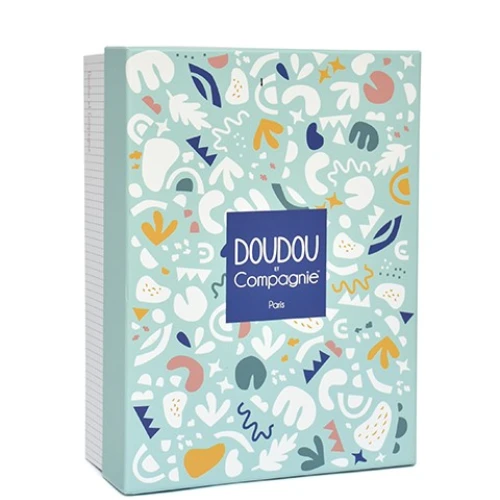 Filou the Calinosaurus is a pretty green baby comforter. Made in an ultra-soft material, it looks great with its combinations of ocher, terracotta and ultramarine blue swaddle colors as well as its small checkered print. This cuddly toy in bright colors will reassure baby, delighted to find so many labels and fancy knots to chew on. It has a beautiful box with graphic patterns, ready to be offered.