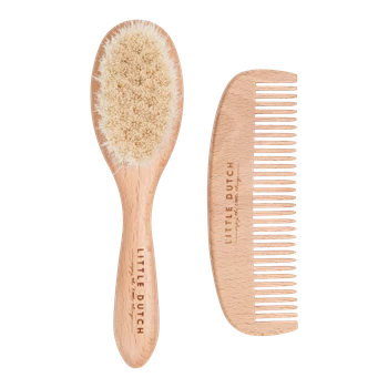 Beautiful wooden set for combing and brushing baby’s hair.