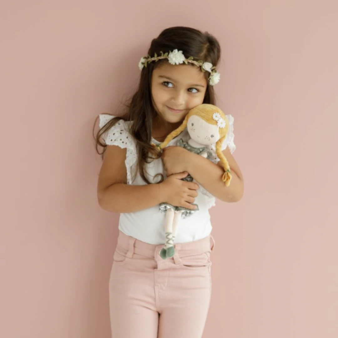 Meet lovely Julia. This plush cuddle doll from Little Dutch in a cute dress wants to be cuddled. Doll Julia is 35 cm tall. Julia can sit up and likes to go with you in the Little Dutch wooden doll stroller. The doll comes in a beautiful storage box.