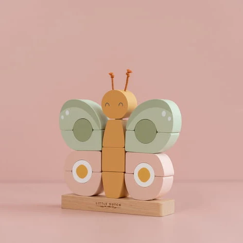 Let’s build a butterfly together! This 16-block stacking puzzle is a real challenge. Let your child stack the wooden rings from big to small on the pyramid and top it off with Butterfly! Fun to practice together and it promotes hand-eye coordination.