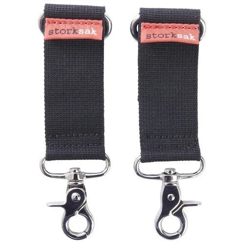 Hardwearing Storksak stroller clips enable you to attach your Storksak bag to your stroller. High quality velcro and a sturdy clip secures the bag to the stroller on each side, allowing you to be hands free with easy access to your bag. Full instructions are included.