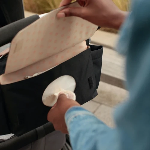 This eco organiser is made from recycled plastic bottles and helps to keep all your essentials within easy reach when on quick trips out and about. The quick access wipes pocket on the outside is a life saver while an internal insulated sleeve is perfect for holding bottle upright and keeping them warm or cool. With adjustable velcro tabs, this organiser is a universal fit for most strollers and prams.