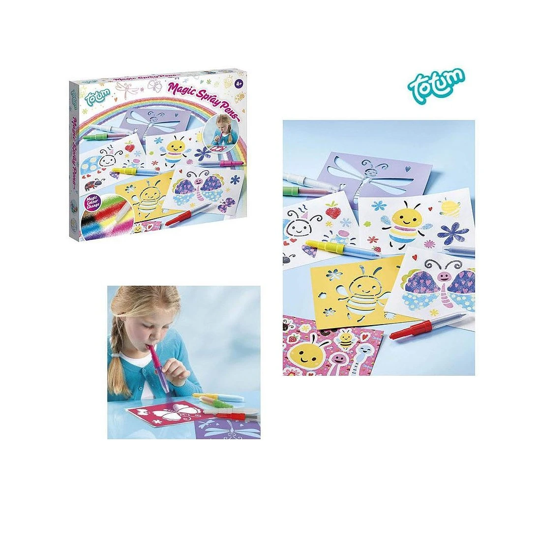 Create your most beautiful works of art with these magic spray pens and cheerful stencils with animal figures such as butterfly, ladybird and bee. The spray pens give a nice special airbrush effect and the special thing about this set is that you can change the colour with one of the blow pens, for a magic effect.